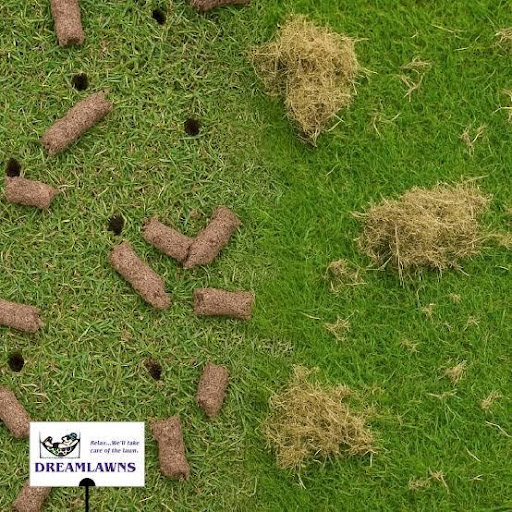 Aeration cores removed from the lawn — this process allows air, water, and nutrients to reach grassroots.
